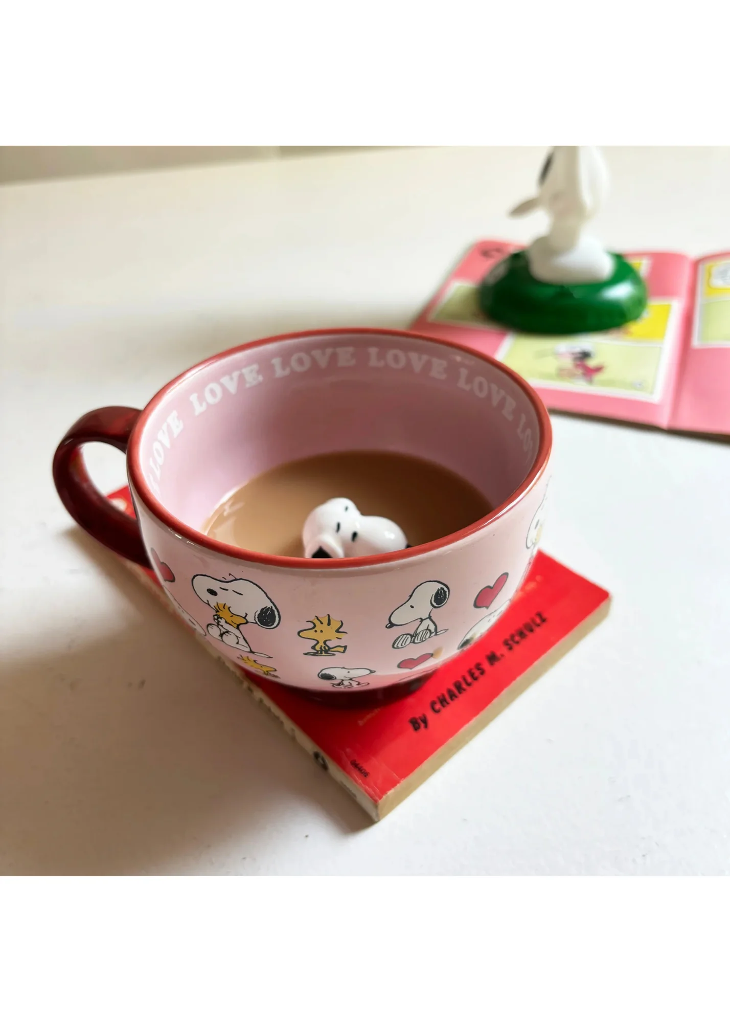 - Adorable 3D Snoopy to peek at your beverage